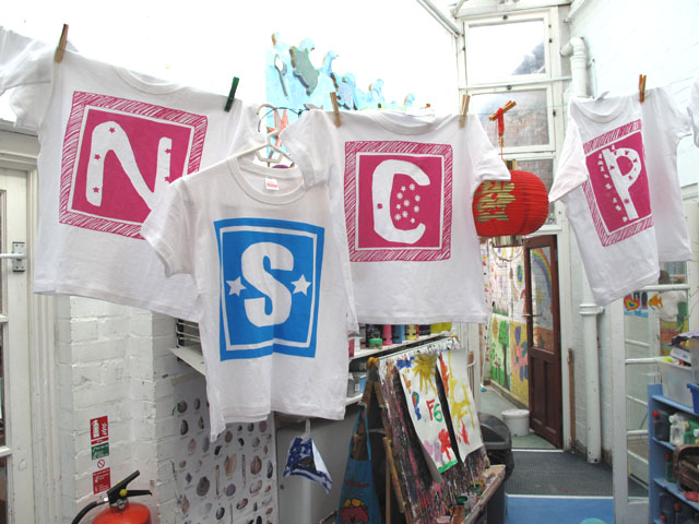 For the nursery I picked T Shirts to make a change, having done bags the last few times. As the holiday workshops are a free for all, with no preparation and kids wanting instant results, I decided to try out letters, keeping it simple for those that found it difficult to grasp, but creative enough for others who could just go for it. I also wanted to draw in some of the other kids that had not been interested in the past.